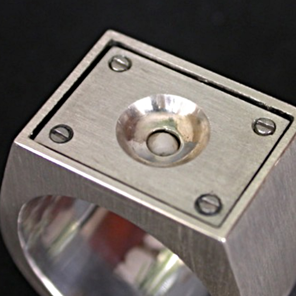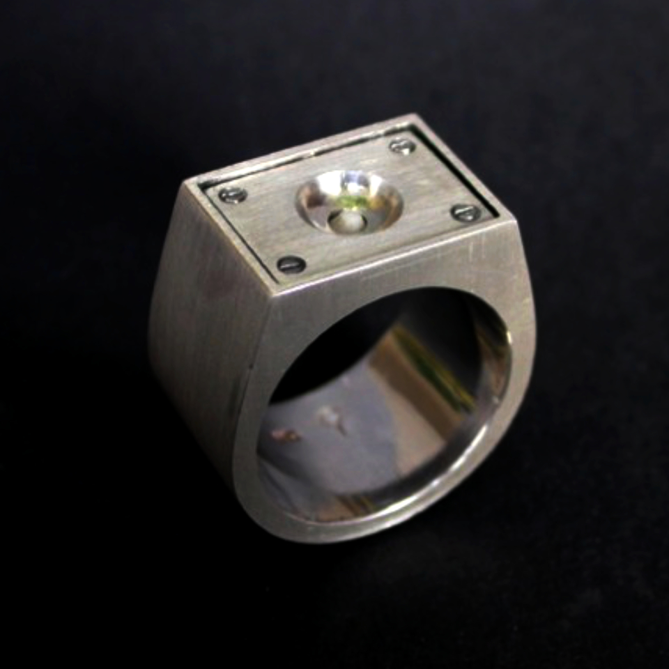 mat zilver, rvs schroefjes en het tandje van zijn zoon